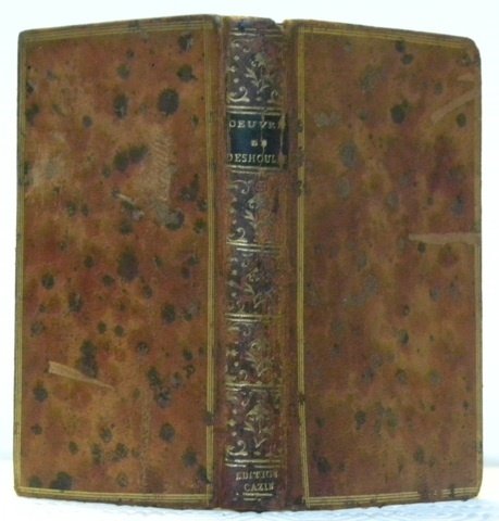 • veau moucheté de l’époque, pièce de titre, fleurons dorés, triple filets dorés en encadrement des plats, tranches dorées, cuir par endroits frotté.