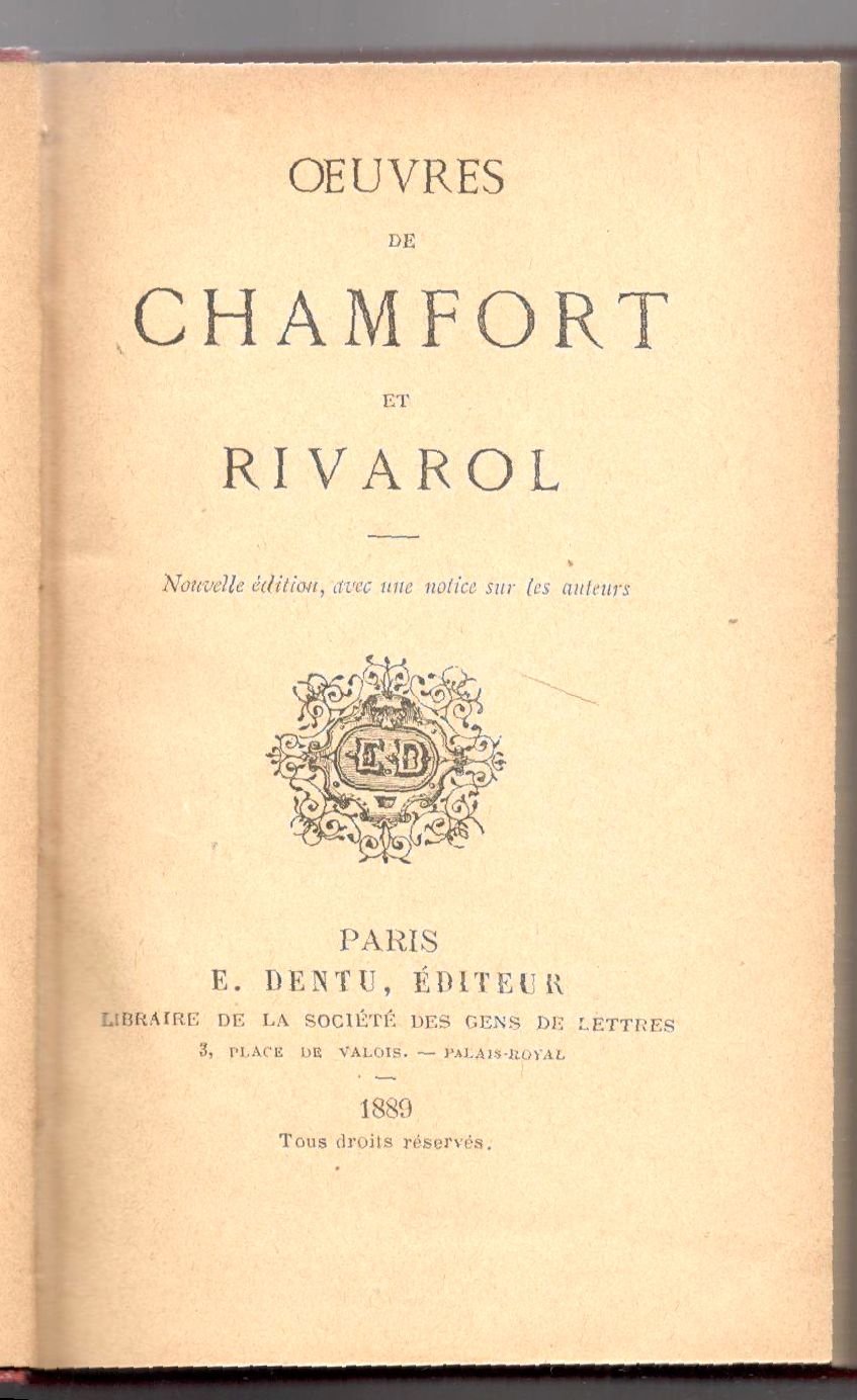 - Chamfort, Nicolas De - Rivarol, Antoine