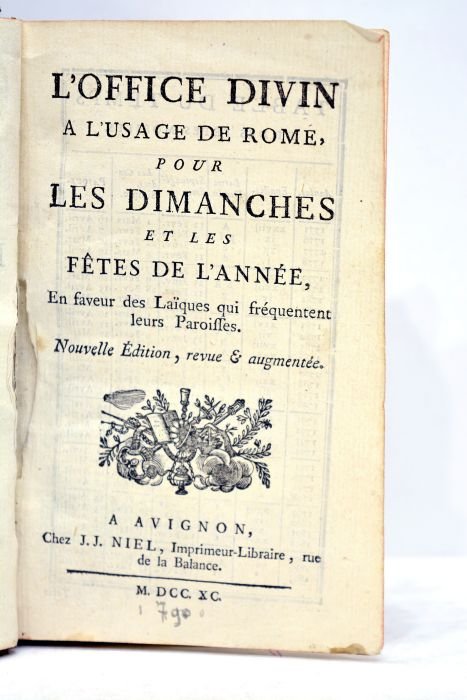 OFFICE (L') divin à l'usage de Rome, pour les dimanches et les fêtes de l'année. En faveur des laïques qui fréquentent leurs paroisses. Nouvelle édition, revue et augmentée.
