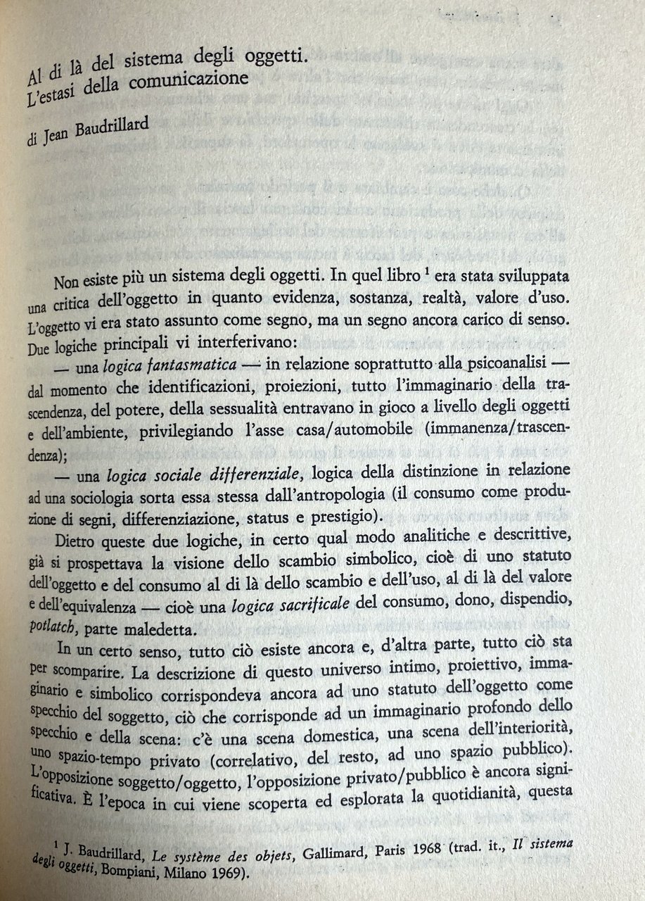 Autore: AA.VV. (Autori Vari): Fulvio Tessitore, Jean Baudrillard, Gillo Dorfles, Giampaolo Fabris, Alessandro Mendini, Yvonne Bernard, Mirilia Bonnes-Dobrowolny, Michel Jambu, Omar Calabrese, Alfredo De Paz, Filippo Alison