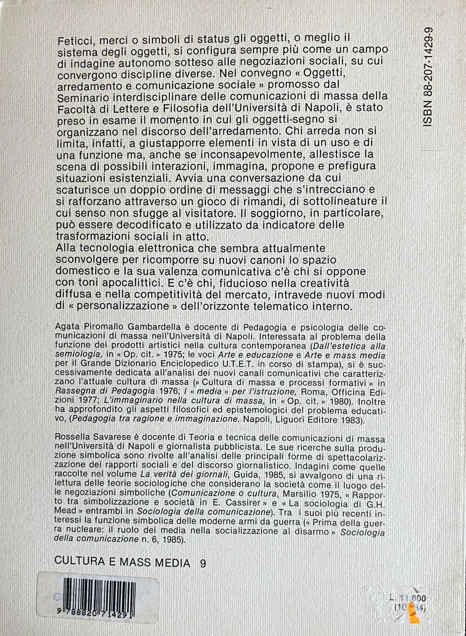 Soggetti: Scienze sociali Arte contemporanea Convegni Atti Oggetti Prodotti Design Arredamento Fenomenologia Architettura Interni Arredo Cultura Società Sociologia Status Feticcio Oggettistica Merce Segni Case Abitazioni Obsolescenza Esposizione Ambiente Habitat Trasformazioni Cambiamenti Spazio domestico Ammobiliare Fruizione Estetica Arredare Filosofia Decodificazione Simboli Psicologia Congressi Politica Comunicazione Studi culturali Semiotica Semiologia Collezionismo Libri Vintage rari Fuori catalogo Pedagogia Ambienti educativi Saggi Landor Estasi Funzione Uso Materiali Ecologia Funzionalità Iconografia Stile Gusto Tendenze Modernariato Virtualità Immaginario Rêverie Chapin Ragone Fenelon Rak Salotto Soggiorno Borghesia Industria Riuso Spreco Artigianato Identità Housing Apple Toffler Consumo Consumismo Elettrodomestici Marchi Ecstasy Function Use Materials Ecology Functionality Iconography Taste Trends Modernism Virtuality Imaginary Space Living Room Bourgeoisie Industry Reuse Waste Craftsmanship Identity Homes Consumption Consumerism Household Appliances Brands Congresses Mass media Papers Communication Culture de masse Médias Aspect Italian Style Cottage Dehors Dedans Social Sciences Furniture Phenomenology Interiors Society Sociology Issues Fetish Objects Goods Signs Houses Obsolescence Exposure Environment Transformations Changes Home Furnishings Narrative Cosmetic fruition Furnishing Philosophy Decoding Symbols Psychology Conventions Acts Politics Cultural studies Semiotics Semiology Out of print books Collectibles Collections Pedagogy Educational Semiotic Essays Aesthetics Edgar Allan Poe