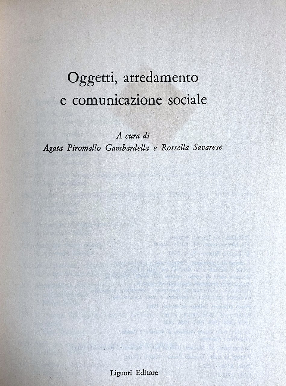 Titolo: Oggetti, arredamento e comunicazione sociale