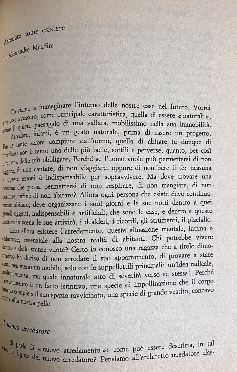 Feticci, merci o simboli di status gli oggetti, o meglio il sistema degli oggetti, si configura sempre più come un campo di indagine autonomo sotteso alle negoziazioni sociali, su cui convergono discipline diverse. Nel convegno Oggetti, arredamento e comunicazione sociale promosso dal Seminario interdisciplinare delle comunicazioni di massa della Facoltà di Lettere e Filosofia dell'Università di Napoli, è stato preso in esame il momento in cui gli oggetti-segno si organizzano nel discorso dell'arredamento. Chi arreda non si limita, infatti, a giustapporre elementi in vista di un uso e di una funzione ma, anche se inconsapevolmente, allestisce la scena di possibili interazioni, immagina, propone e prefigura situazioni esistenziali. Avvia una conversazione da cui scaturisce un doppio ordine di messaggi che s'intrecciano e si rafforzano attraverso un gioco di rimandi, di sottolineature il cui senso non sfugge al visitatore. Il soggiorno, in particolare, può essere decodificato e utilizzato da indicatore delle trasformazioni sociali in atto. Alla tecnologia elettronica che sembra attualmente sconvolgere per ricomporre su nuovi canoni lo spazio domestico e la sua valenza comunicativa c'è chi, fiducioso nella creatività diffusa e nella competitività del mercato, intravede nuovi modi di personalizzazione dell'orizzonte telematico interno.