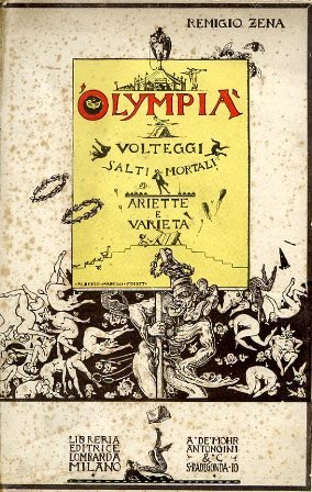 In-8°, pp. 235, (1), brossura editoriale illustrata a colori da Alberto Martini con figurazioni circensi e grottesche. Ottimo esemplare protetto da velina. Edizione originale, non comune, di questa raccolta poetica del grande scapigliato Remigio Zena, al secolo Gaspare Invrea (Torino, 1850-Genova, 1917), celebre soprattutto per 'La bocca del lupo', romanzo altamente apprezzato da Benedetto Croce e da Eugenio Montale (che scrisse significativamente: 'Nessuno capì così bene i poveri, i diseredati, come lo Zena; nessuno li lasciò ragionare con tanta indulgenza, con tanta pietà superiore e nascostamente sorridente'). La presente raccolta è tutta ispirata al variopinto e surreale mondo del circo: clowns, trapezisti, equilibristi, animali ammaestrati, ecc., costituiscono il pretesto e l'occasione per il dispiegarsi del singolare universo lirico di Zena nel senso di un'arguta satira del mondo culturale e letterario del tempo già presaga degli accenti di Palazzeschi.