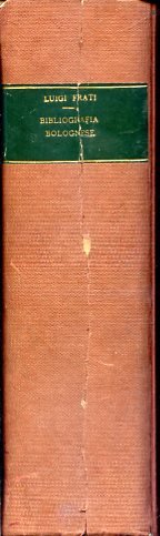 2 voll. in un tomo in-8° (249x168mm), pp. (4), XII, colonne 840 (la numerazione della parte bibliografica è per colonne); pp. (6), coll. 841-1730, (1) p. di errata, legatura t. tela con titolo in oro su tassello al dorso e velina protettiva. Bell'esemplare. Assai rara edizione originale, stampata in soli 250 esemplari, della bibliografia di riferimento su Bologna, contante 12627 voci. Nutriti indici finali degli autori e delle materie. L'opera fu redatta principalmente sulle opere presenti nella Biblioteca dell'Archiginnasio bolognese, di cui il Frati era direttore. Il Frati (Bologna,1815-ivi, 1902) diresse la Biblioteca Comunale dell'Archiginnasio di Bologna dal 1858 al 1902 e fu artefice della fusione in un unico Museo civico dei due musei archeologici bolognesi, l'Universitario, governativo, e il museo Palagi, di proprietà comunale. Tra i fondatori della Deputazione di storia patria per l'ex Legazione delle Romagne, lasciò numerose opere di storia patria bolognese, di archeologia, di numismatica, etc.