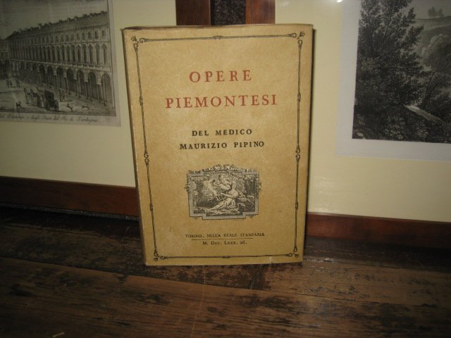 2 parti in un vol. in-8°, pp. XVI, 197, (5); XII, 198, (8); legatura editoriale t. tela con sovraccoperta pergamenata illustrata. Ritratto all'antiporta di Maria Adelaide Clotilde Saveria di Savoia riprodotto dall'edizione torinese del 1783, così come il frontespizio in rosso e nero con piccola vignetta. Stato di nuovo. Bella edizione anastatica delle due opere più importanti del Pipino (entrambe pubblicate nel 1783). La 'Gramatica Piemontese' è la prima grammatica del dialetto piemontese, seguita da esempi di lettere in dialetto e da una 'Raccolta di Proverbi e modi proverbiali'. L'opera è concepita come seguito del 'Vocabolario piemontese', il primo tentativo compiuto di codificare ortograficamente e grammaticalmente il dialetto del Piemonte, normalizzandone pronuncia e grafia in una sorta di koiné. La seconda opera consiste nella riproduzione della raccolta di lirici vernacolari piemontesi curata dal Pipino stesso. Alle pp. 1-16, 'Poesie di vari autori' (le poesie firmate sono di Alberto Avedani e di Lesbio Argisseo; le altre sono anonime o firmate con le sole iniziali); alle pp. 17-49, 'Poesie di Silvio Balbis'; alle pp. 51-189, 'Poesie di vari autori' (dalla p. 53 alla p. 170, eccettuate solo alcune, sono di Ignazio Isler). Il Pipino, medico di corte, nacque a Cuneo in data imprecisata e morì su di una nave nei pressi di Rodi nel 1788. Fu autore, oltre che delle poesie vernacolari qui raccolte e della prima grammatica in assoluto del dialetto piemontese, qui riprodotta,dell'Almanacco di sanità (1785-1789), con cui si propose di realizzare un'enciclopedia medica tascabile destinata a un pubblico il più vasto possibile: abitanti delle campagne, parroci e, in genere, tutti coloro i quali si trovassero nella necessità di dover soccorrere e curare infermi in luoghi dove i medici scarseggiavano. Cfr. Clivio, 3083.