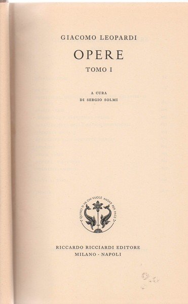 In 8°, t.t. edit., tit. in oro al dorso, sovrac. astuccio, pag.(4), XXXVII, 1004,(6). Copia molto buona senza prob. evidenti. Coll. "La letteratura Italiana Storia e testi. Vol. 52 Tomo I". (m200)