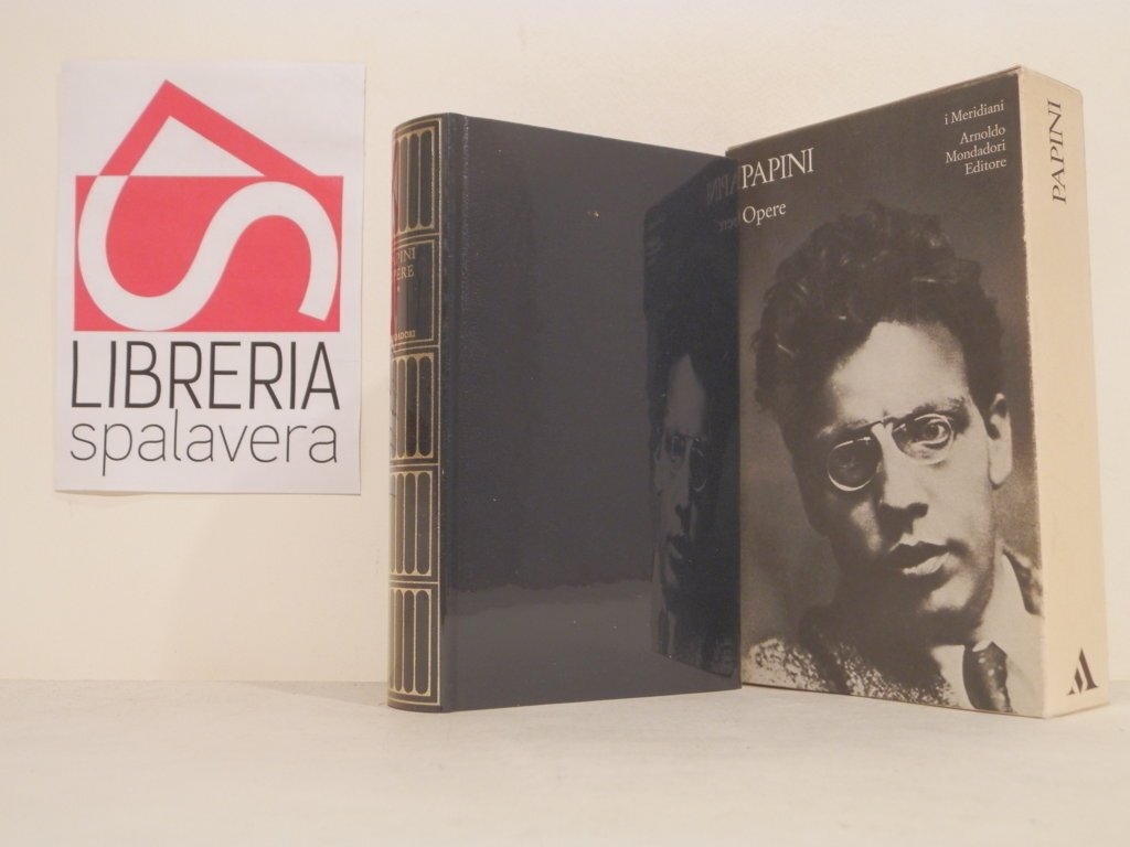 16°, cm 18, pp. 810, legatura editoriale in pelle blu con titoli in oro al dorso, acetato trasparente, entro cofanetto illustrato. Collana: Meridiani. Primo volume, unico pubblicato: Dal «Leonardo» al futurismo. Leggero alone di polvere al cofanetto e impercettibile segno d'usura al margine del dorso, peraltro buono stato di conservazione. Narratore, poeta, saggista, scrittore eclettico e fecondo, Papini è stato un intellettuale vivace, un animatore del dibattito culturale non solo italiano sin dagli anni Dieci. Per il volume antologico Baldacci ha scelto e curato i testi del "primo" Papini, quelli legati alla fervida stagione delle avanguardie storiche e del Futurismo.