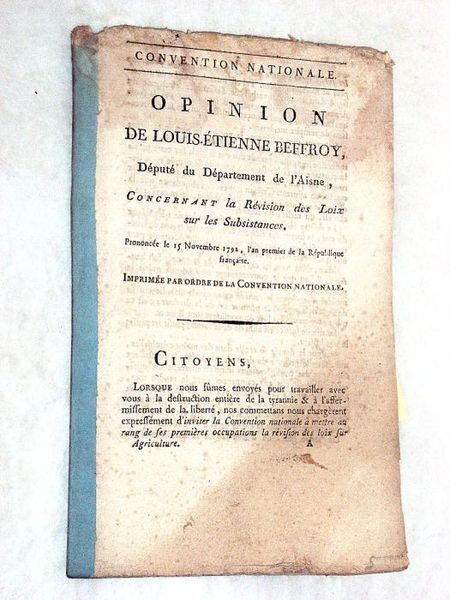 Opinion concernant la Révision des Lois sur les subsistances. Prononcée le 15 Novembre 1792, l'an premier de la République française.