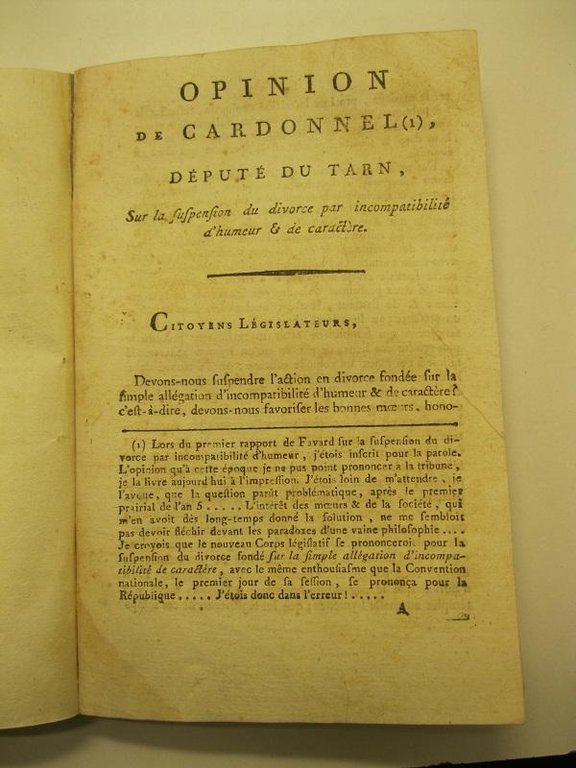 Opinion de Cardonnel depute du Tarn sur la suspension du divorce par incompatibilite' d'humeur & de caractere