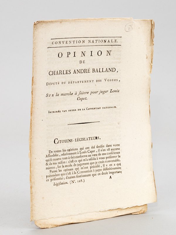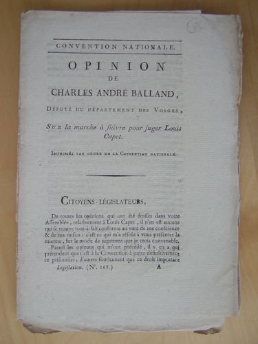 Opinion de Charles André Balland, Député du Département des Vosges, sur la marche à suivre pour juger Louis Capet