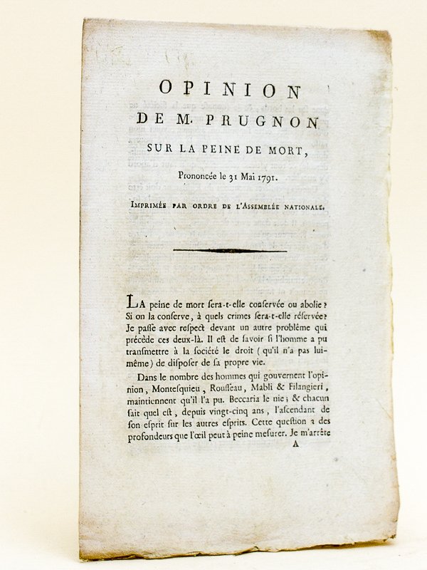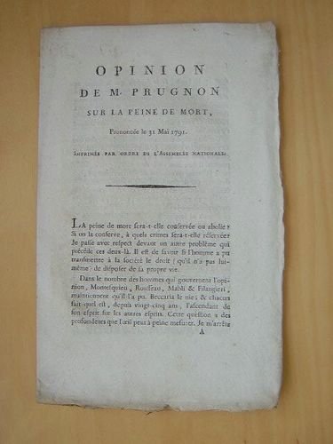 Opinion de M. Prugnon sur la Peine de Mort, prononcée le 31 Mai 1791. [ édition originale ]