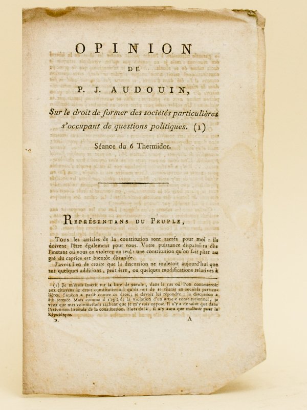 Opinion de P. J. Audouin, sur le droit de former des sociétés particulières s'occupant de questions politiques. Séance du 6 thermidor.