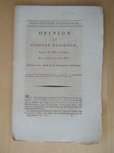 Opinion du citoyen Dubignon, Député de l'Ille et Vilaine, sur le procès de Louis XVI