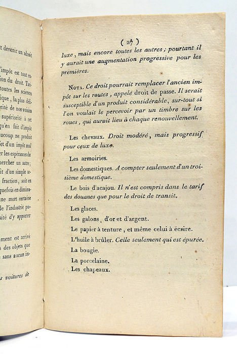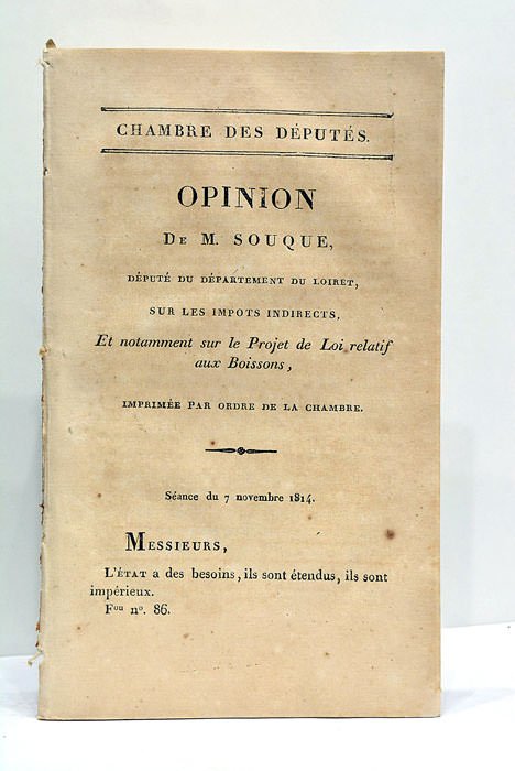 Opinion sur les impôts indirects, et notamment sur le Projet de Loi relatif aux Boissons.
