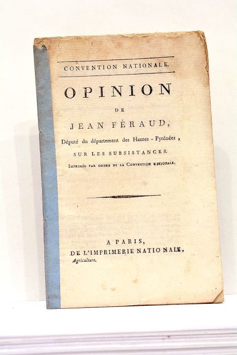 in-8. 15pp. Broché. Dos renforcé. Papier abîmé par des traces d'humidité dans les marges supérieures. L'auteur était député des Hautes-Pyrénées. Révolution française. Economie. Commerce. Agriculture. Circulation des grains.