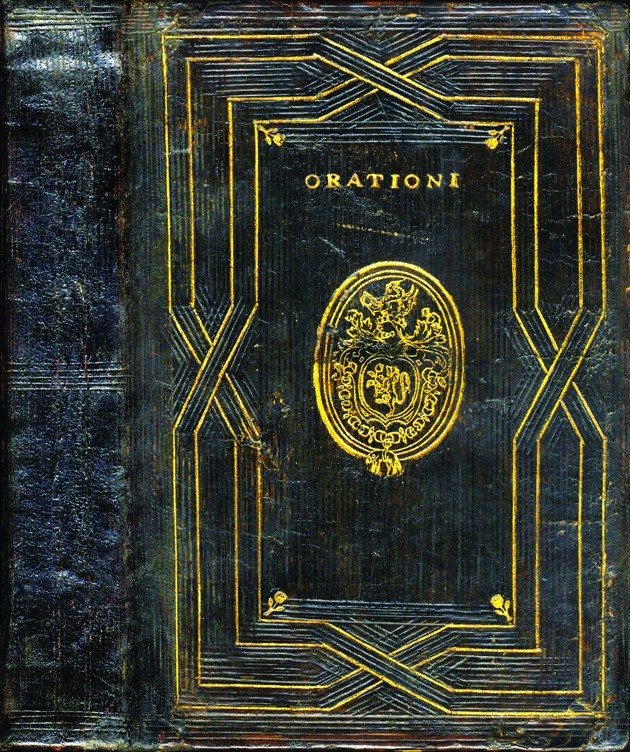 >in-4, pp. (32), 740, elegante legatura veneziana coeva in marocchino bruno scuro, ai piatti impresse in oro fasce intrecciate, titolo e tondo con armi araldiche e Toison d'or (lievi restauri agli spigoli e alle cerniere). Tutta la legatura presenta un'inusuale filettatura a secco in verticale che ricorda la lavorazione del legno. Lo stemma al centro dei piatti, non identificato, è formato da un leone rampante con una rosa tra le zampe ed è sormontato da un cimiero e da una sorta i drago alato. Analoga lavorazione con fasce incrociate si riscontra in una legatura veneziana con le ''Rime'' di Vittoria colonna del 1548 (De Marinis, I, tav. CLIII). Prima edizione. Precede il testo la dedica a Giovanni Battista Castaldo. Impresa tipografica al titolo raffig. la fenice, finalini, testatine e capilettera ornati n.t. Contiene tra le altre le orazioni di Senofonte, Polibio, Tucidide, Sabellico, Corio...''Benchè nel frontespizio si attribuisca l'onere di questo volgarizzamenti al raccoglitore stesso... possiamo asservare che sono copiate dalle versioni del Domenichi, del Carani...'' (Annali Giolito, II, 17). Esemplare di illustre provenienza: ex libris Fustenberg. Questa legatura è descritta e illustrata in T. De Marinis ''La legatura del Rinascimento italiano nella Biblioteca Fustenberg. Amburgo, 1966'' alle p. 92 e tavola al frontespizio; fu inoltre esposta in una mostra d'arte a Ginevra sempre nel 1966. Esemplare estremamete genuino in magnifica legatura coeva (lievi aloni d'umido nel margine bianco superiore; antichi piccoli restauri al margine bianco sup. da p. 705 alla fine). Annali del Giolito, II, 17. Adams N-14. Gamba 1545, note. De Marinis cfr, I, 190, tav. CLIII.