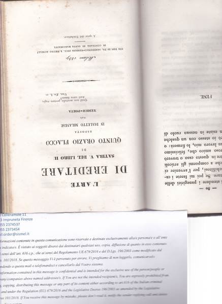 Orazio F. l'Arte poetica. L'Avarizia satira prima. Pref. delle mie opere future, sherzo. L'Arte di ereditare satira V del libro II. Le Strade ferrate. Il volgo e la medicina discorso pop. app.ce a il Volgo e la medicina. Amicizia e tolleranza
