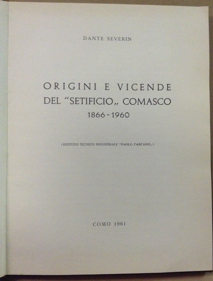 ORIGINI E VICENDE DEL SETIFICIO COMASCO. 1866-1960. - (Istituto tecnico industriale Paolo Carcano).