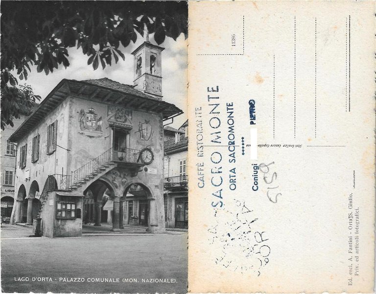 Orta. Palazzo Comunale. Timbro caffe Sacro Monte. Non viaggiata