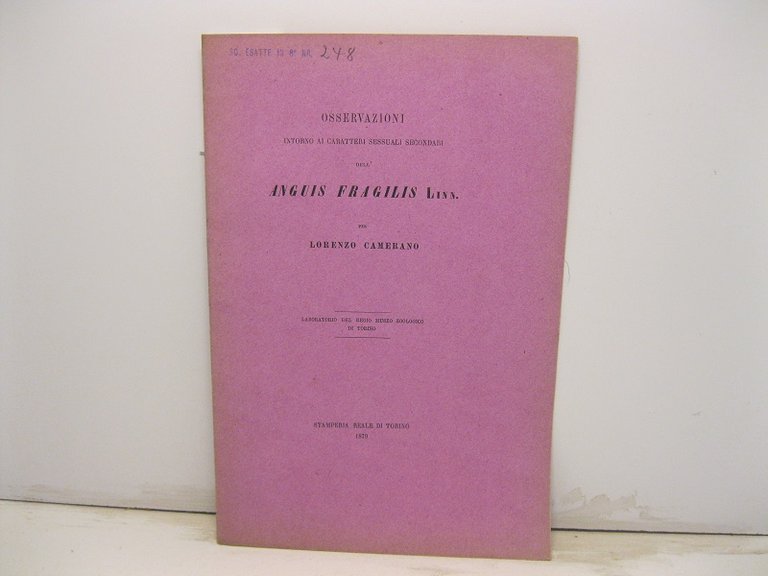 Osservazioni intorno ai caratteri sessuali secondarii dell'anguis fragilis linn.