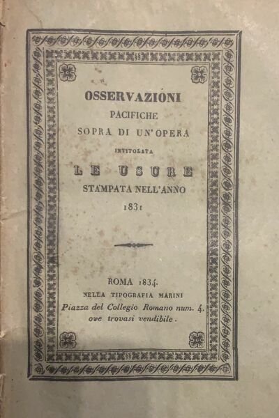 Osservazioni pacifiche sopra di un'opera intitolata le usure stampata nell'anno 1831