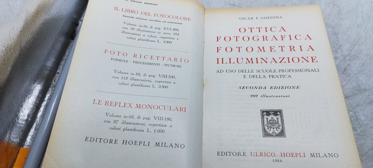 oscar f ghedina ottica fotografia fotometria illuminazione. , hoepli 1964 italiano, 375 °°brossura