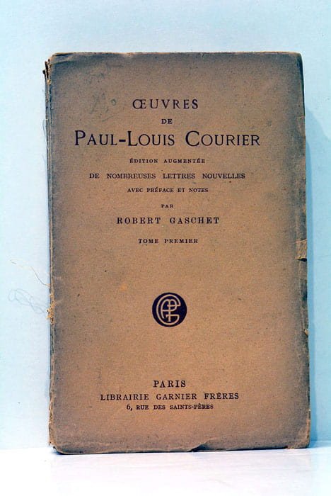 Ouvres de Paul-Louis Courier. Édition augmentée de nombreuses lettres nouvelles avec préface et notes. Tome premier.
