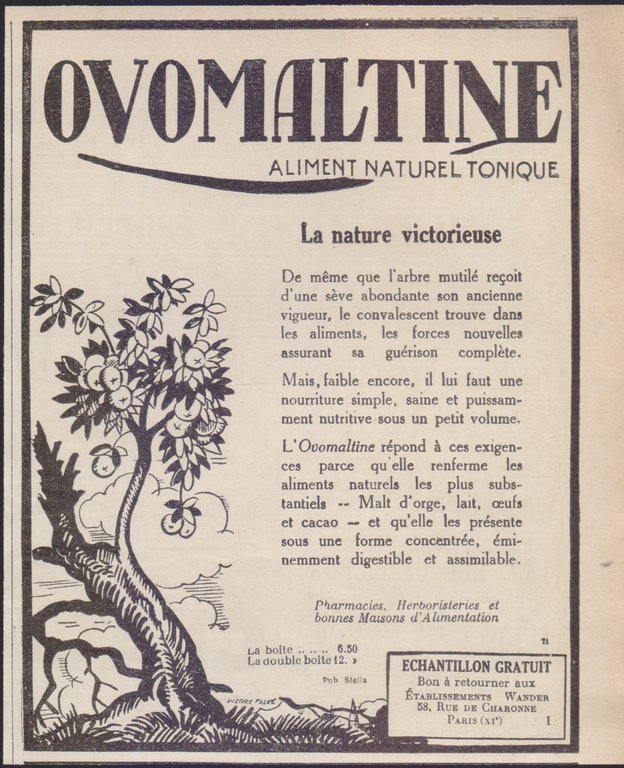 Ovomaltine aliment naturel tonique. Advertising 1926
