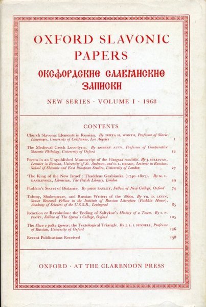Oxford Slavonic Papers : New Series : Volume I (One)
