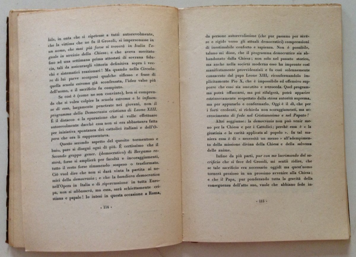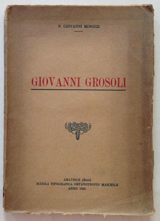 P. Giovanni Minozzi, Giovanni Grosoli Scuola Tipografica Orfanotrofio Maschile, Amatrice (Rieti), 1945; cm. 20,5x14,5; pp. 190; rara biografia Giovanni Grosoli, figura centrale del movimento Cattolico, nella stampa e nel mondo bancario; brossura ed. Condizioni di conservazione Esemplare ben conservato con tracce d'uso; brossura editoriale brunita, con minimi strappetti ai margini; dorso con minime mancanze alle cuffie; interni leggermente bruniti. SETT194.L16582 MT