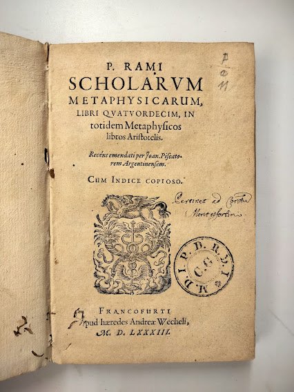 P. Rami Scholarum metaphysicarum libri quatuordecim in totidem metaphysicos libros Aristotelis.Cum indice copioso.