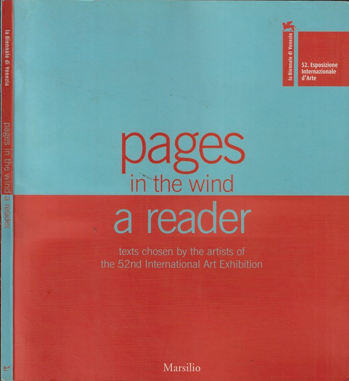 Testi scelti degli artisti della 52esima Esposizione Internazionale d'Arte della Biennale di Venezia. Brossura editoriale con risvolti, a due colori, con piega da scaffale a metà per tutta la sua lunghezza, anche nella parte interna. Pagine ingiallite, come pure i tagli, salde, con ampio margine. Numero pagine 91.