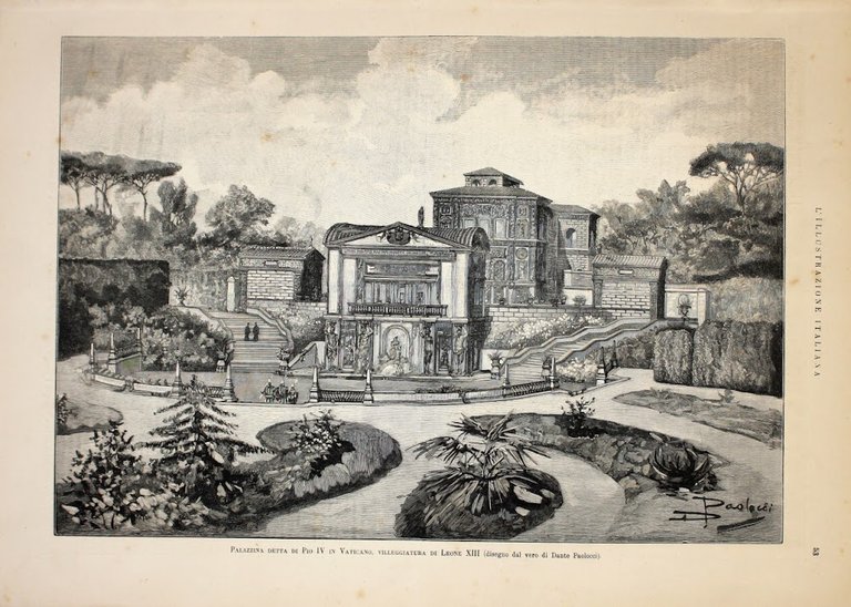 Palazzina detta di Pio IV in Vaticano, villeggiatura di Leone XIII. Stampa 1889
