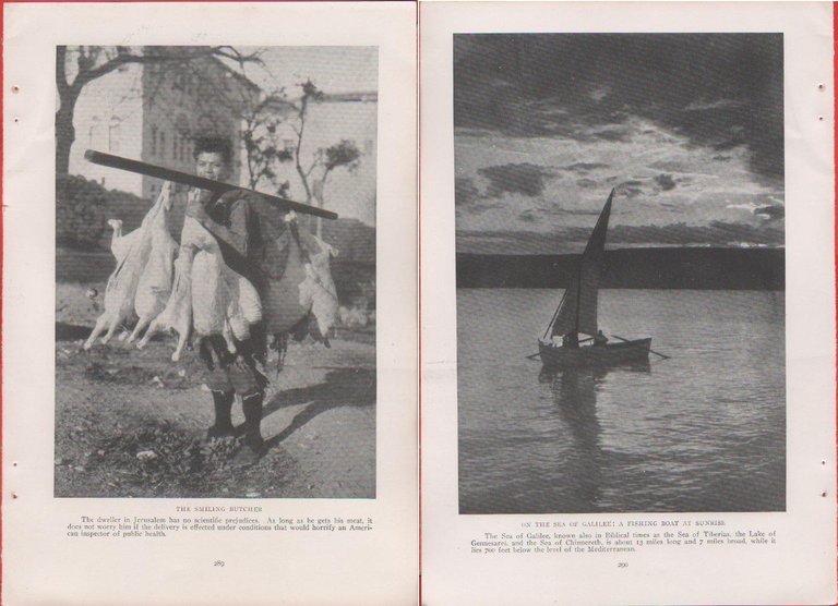 Palestine. The smiling butcher/Sea of Gelilee. Fisching boat. Foto da rivista 1914