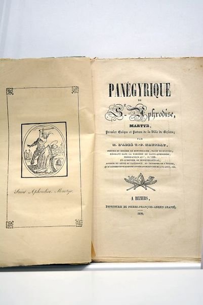 Panégyrique de St. Aphrodise martyr, premier évêque et patron de la ville de Beziers.