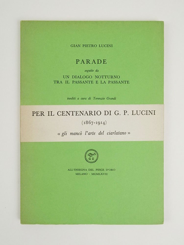 LIBROEdizione originale.Ottimo esemplare, il n. 439 di 1000, completo della fascetta editoriale.Terenzio Grandi aveva cominciato nel 1929 la sua opera di recupero dell’opera di Gian Pietro Lucini, lanciando la sottoscrizione per la pubblicazione del corposo inedito della «Gnosi del Melibeo». Questo libretto dell’«Acquario» Scheiwiller è l’ultimo atto della sua opera luciniana: impresso in 1000 esemplari numerati in occasione del centenario della nascita di Lucini, contiene gli inediti di cui al titolo.
