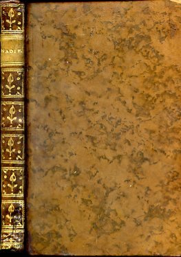 In-8° (191x125mm), pp. 141, legatura coeva p. pelle nocciola marmorizzata con filettature, titolo su tassello e fregi floreali e vegetali impressi in oro al dorso. Unghie decorate in oro, tagli rossi, fregio calcografico al frontespizio con testa di Alessandro Magno, olifanti, cartigli e serti. Una testatine ornata su rame. Precede l'opera, legata antecedentemente al libro di Bougainville, in edizione originale: (Paul Ulric Du Buisson), 'Nadir, ou Thamas-Kouli-Khan, Tragédie. Par M. de B.[uisson]. Représentée pour la premiere fois, sur le Théâtre de la Nation, le 31 Août 1780', a Paris, Chez Alex. Jombert, jeune, successeur de Ch. Ant. Jombert, son pere, Libraire du Roi pour l'artillerie & le Génie', 1780, pp. (4), 66, (1) di approvazione. Fregio inciso su rame al titolo, una testatina ornata. Esemplare assai bello, con usuali bruniture e fioriture di scarso peso. Prima edizione di questo parallelo storico tra la spedizione in India di Alessandro Magno e quella di Tahmas Kouli Khan, ossia lo Shah di Persia Nadir (1688-1747), tracciato dal fratello del grande navigatore ed esploratore Louis Antoine de Bougainville, lo storico ed archeologo Jean Pierre. Lo scritto, molto raro e senza indicazioni tipografiche, è uno dei primi contributi occidentali allo studio della figura di Nadir Shah. Jean Pierre de Bougainville (Parigi, 1722-Loches, 1765), membro di varie società di dotti, segretario dell'Académie des Insriptions et des Beaux Arts e studioso di notevole valore, fu incaricato da Luigi XV dell'illustrazione storica delle medaglie formanti la storia numismatica del suo regno. Tradusse anche in francese l'Anti-Lucrezio' del Polignac e fu satireggiato da Voltaire per il suo bigottismo religioso. Nadir, di nascita turco (il suo nome originario era Nadhr Quli), divenne per usurpazione reggente del trono di Persia nel 1732, assurgendo, quattro anni dopol,a titolo di Shah. Sotto la sua guida la Persia pervenne alla conquista di Delhi e di altre città e territori indiani sbaragliando le armate del Gran Mogul e costituendo un impero che si estendeva dall'Eufrate all'India all'Afghanistan. Fu assassinato il 20 giugno 1747 dai suoi stessi ufficiali, contrari alla restaurazione dell'ortodossia sunnita nella Persia a maggioranza sciita. Il Du Buisson (1746-1794) fu letterato francese. La sua tragedia è legata assieme alla dissertazione di Bougainville in quanto anch'essa ispirata alla figura di Nadir. Beuchot e Walkenaer in Michaud, Biogr. Universelle, V, 292-293. Chadenat, 5903. Brunet, Table, 22865. Per la tragedia del Buisson, Barbier, II, 12266.