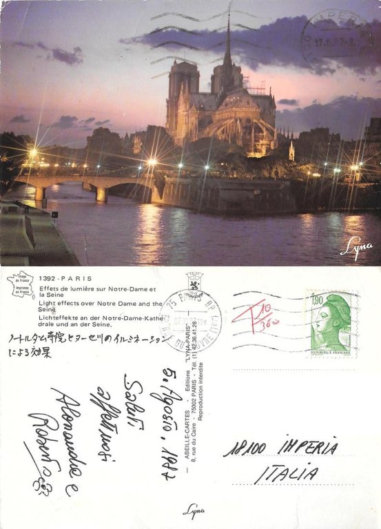 Paris. Effets de lumiere sur Notre-Dames et la Seine. Viaggiata 1987