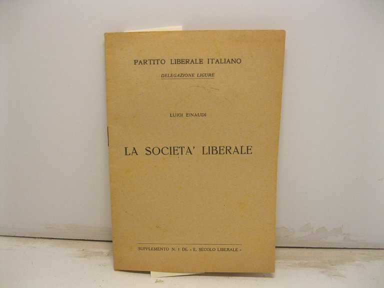 Partito Liberale Italiano. Delegazione ligure. La societa' liberale. Supplemento n. 1 de 'Il secolo liberale'