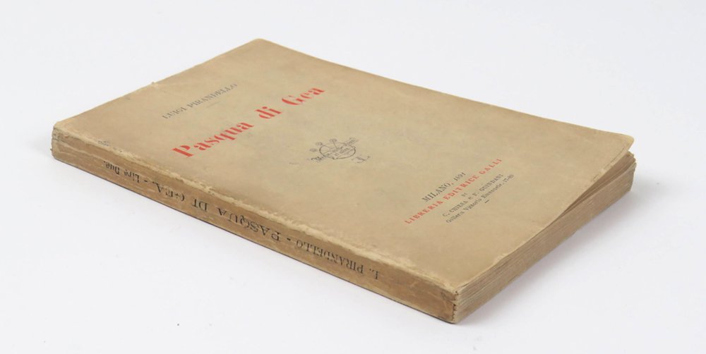LIBROPrima edizione.Esemplare molto ben conservato nella rara copertina originale in brossura (minimi segni del tempo ai bordi), eccezionalmente fresco e chiaro all’interno. Da segnalare solo una firma d’appartenenza coeva al frontespizio, non particolarmente disturbante.Rara seconda opera pirandelliana, come la prima («Mal giocondo») è una raccolta di versi. Le liriche di «Pasqua di Gea» furono scritte nel soggiorno in Germania, tra il 1889 e il 1890, e dedicate a una giovane tedesca, Jenny Schulz-Lander, di cui Pirandello era innamorato.Bibl.: Lo Vecchio Musti, Bibliografia di Pirandello (Milano 1937), pp. 11-12