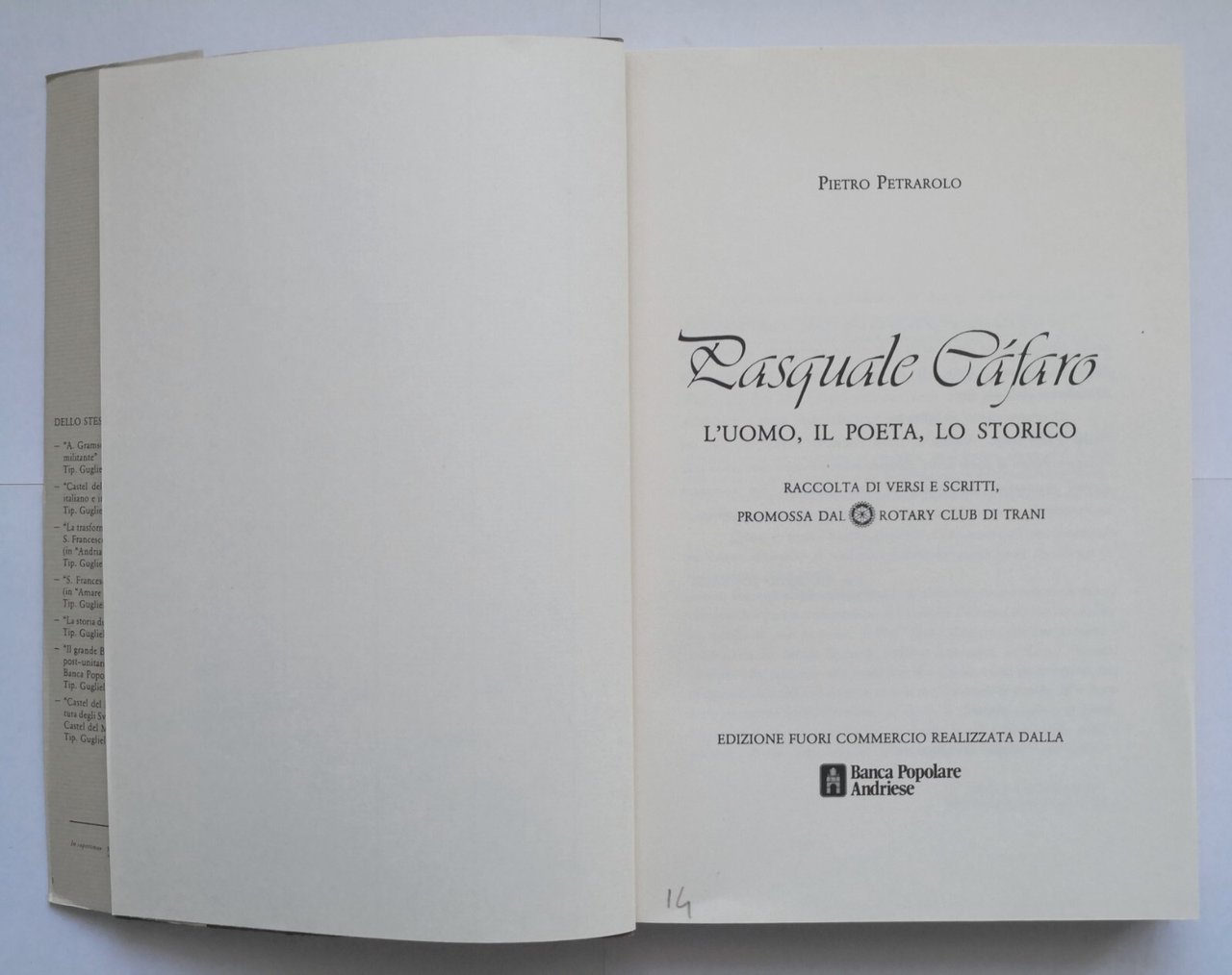 PASQUALE CAFARO di Pietro Petrarolo 1985 Banca Popolare Andriese Libro storico