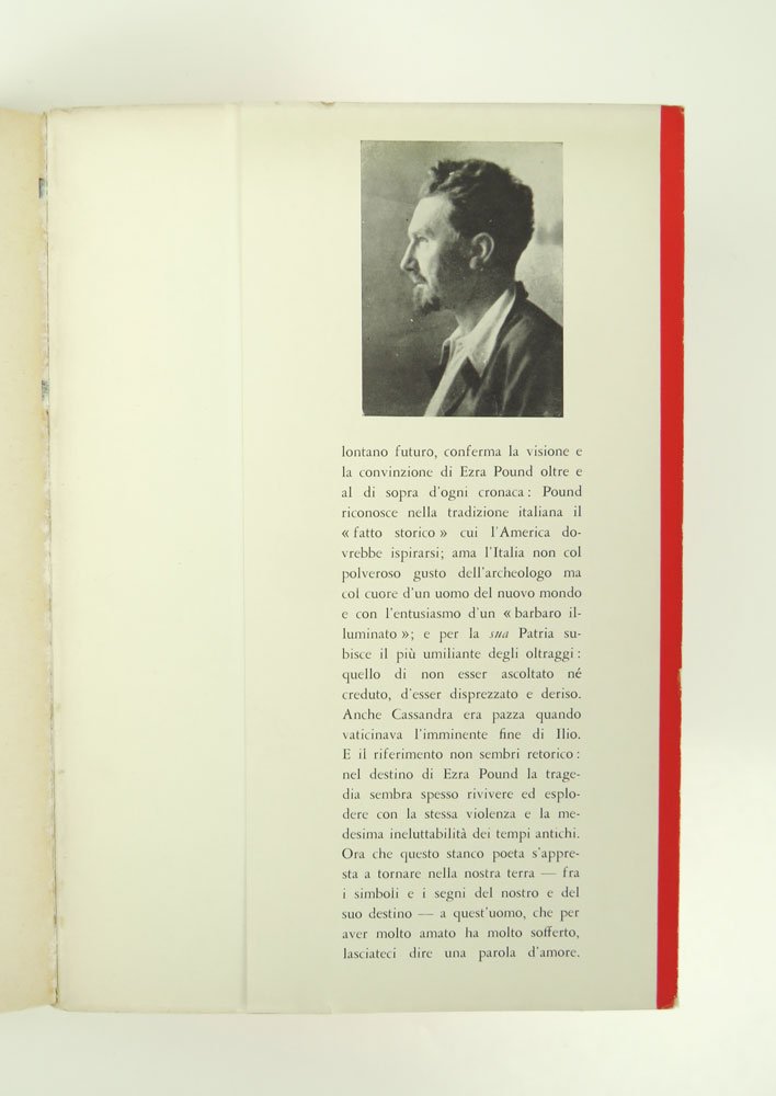LIBROPrima edizione italiana.Ottimo esemplare, fresco e pulito, con una rarissima sovracoperta variante non censita (minime mancanze perimetrali).Traduzione italiana del volume edito da Ralph Fletcher Seymour a Chicago nel 1950 (Gallup, A63a).Gallup, Ezra Pound: a Bibliography, D70