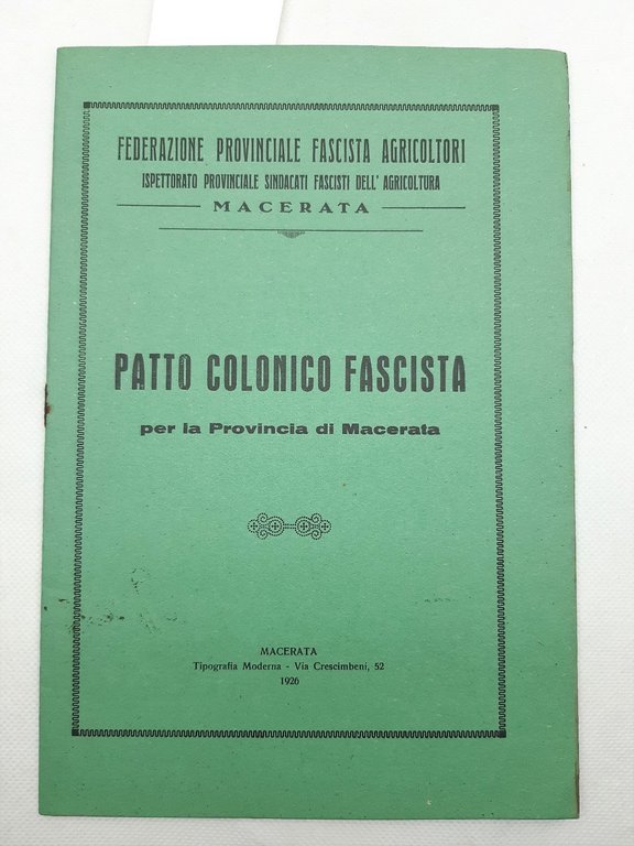Patto colonico fascista per la provincia di Macerata agricoltori 1926 -3159