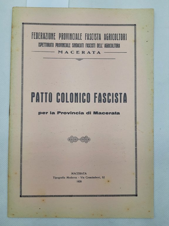 Patto colonico fascista per la provincia di Macerata agricoltori 1926 -3166