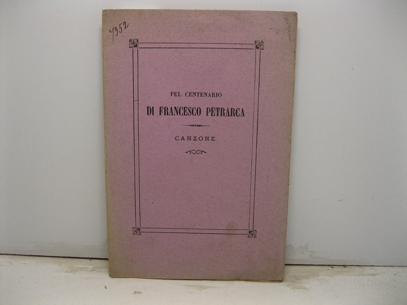 In 8, pp. 10 + (2b). Br. ed. Canzone dedicata al Petrarca in occasione del V centenario della morte avvenuta ad Arqua' nel 1374.