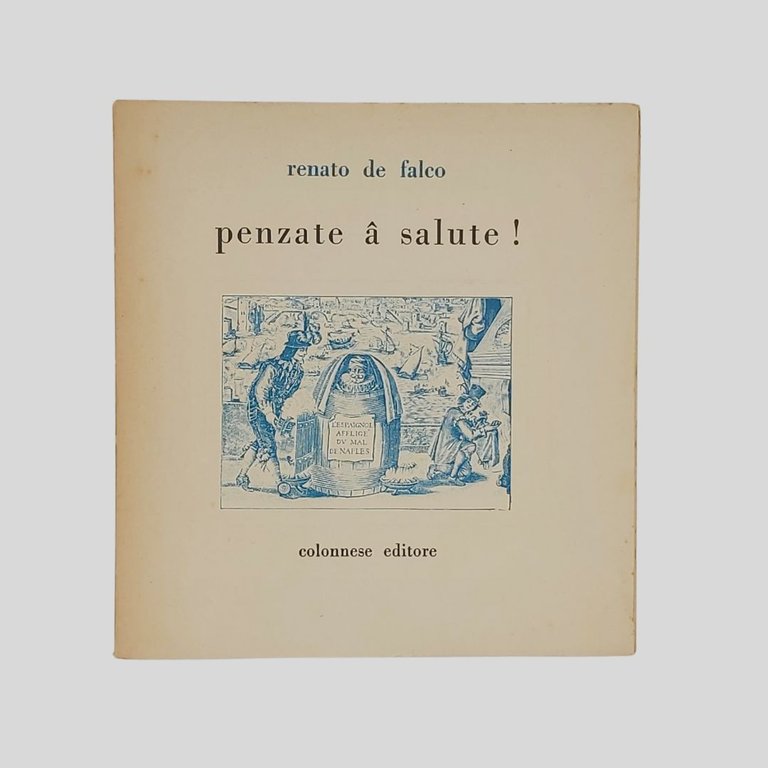 Tipografia Contessa. In 16° carré (cm 18), pp. 45 (3). Naturali “segni del tempo” alla copertina, in buone condizioni. Prima edizione. La salute nei proverbi napoletani raccolti da Renato de Falco.