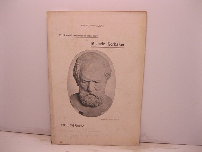 In 8, pp. 44 + (2b). Intonso. Br. ed. con ill. al p. ant. raff. la scultura bronzea di Tommaso Piscitelli raff. Kerbaker. Interessante bibliografia delle opere del linguista nato a Torino e morto a Napoli nel 1914.