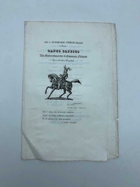 Per la riunione degli scienziati italiani in Torino. Canto saffico alla stata equestre di Emanuele Filiberto opera del celebre Marochetti