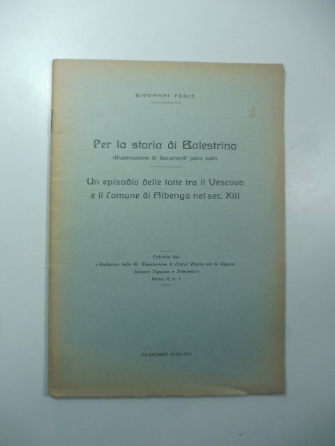Per la storia di Balestrino (Illustrazione di documenti poco noti). Un episodio delle lotte tra il Vescovo e il Comune di Albenga nel sec. XIII